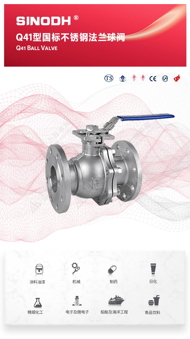 Q41型国标不锈钢法兰球阀,为乐动网页版登录入口自主研发生产。本产品设计制造标准符合GB/T12237、GB/T 1 2224标准该产品的球体在介质压力作用下,球体能产生-定的位移并紧压在出口端的密封面上,保证出口端密封。适用于水、溶剂、酸和天然气等-般工业介质,也适用于工况恶劣的介质,如氧气、过氧化氢、甲烷和乙烯等介质。